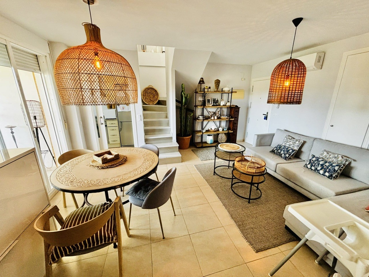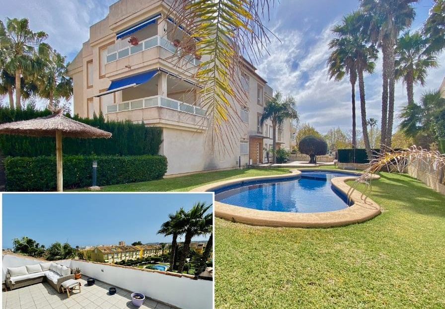 A 2-bedroom 2-bathroom penthouse apartment situated in one of the most sought-after areas of Jávea, thanks to its unbeatable proximity to everything you need. Supermarkets, beaches, schools, the local sports centre, parks, and public transport are all within walking distance, making it an ideal location for both convenience and lifestyle. The apartment is part of a lovely, well-maintained complex and was built in 2005. With a total of 100 m² and a south-facing orientation, it enjoys plenty of natural light throughout. Features include built-in wardrobes and double-glazed windows. On the main floor, you are welcomed into a bright and inviting open-plan living and dining room, creating a cosy yet spacious atmosphere. The adjoining kitchen, though compact, is modern, well-organised, and highly functional.