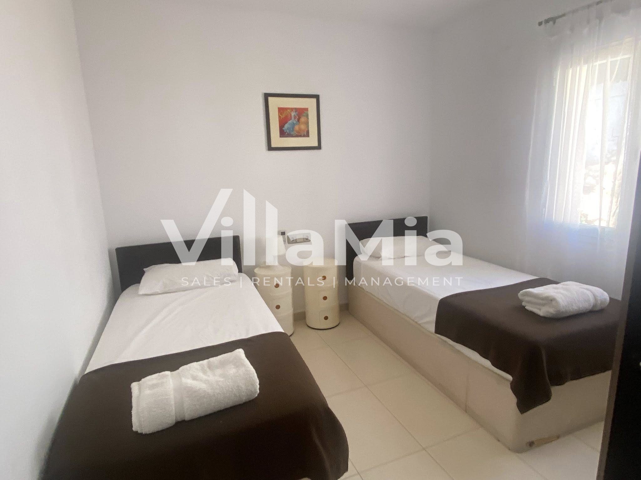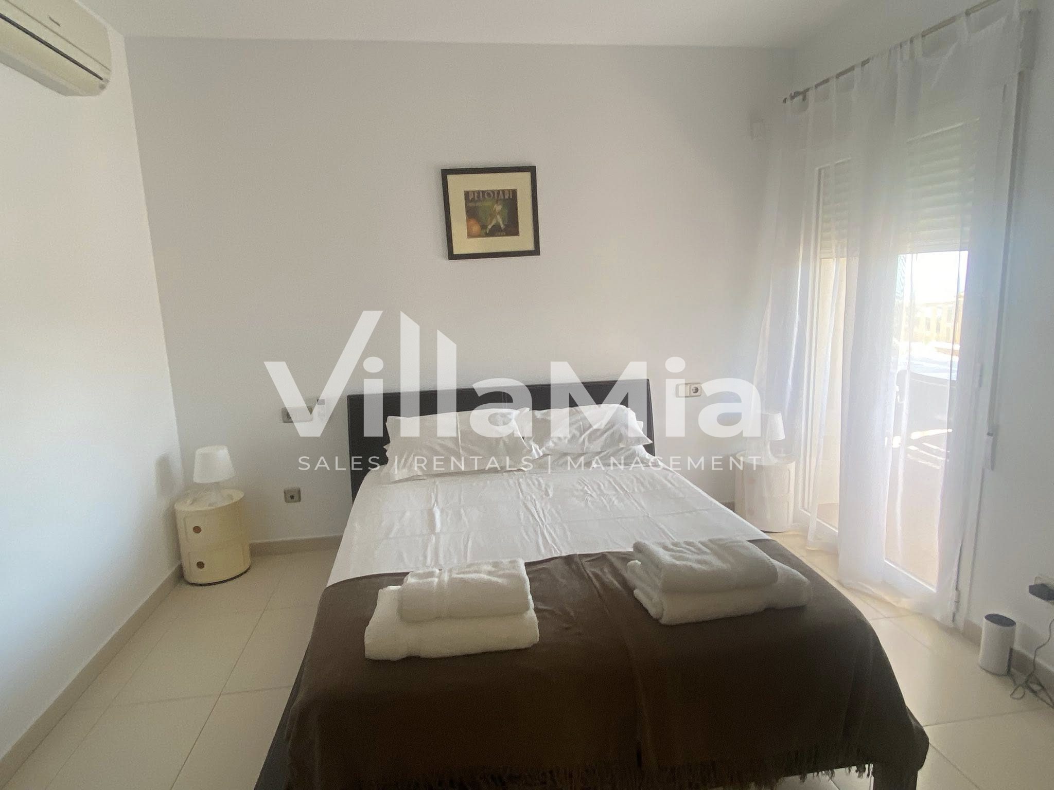 This modern 4-bedroom villa is located in the Cumbre del Sol area of Benitachell, midway between the Jávea and Moraira and close to Lady Elizabeth International school. Recently-decorated and with new mattresses, sofas and sun beds, the property features an open-plan modern fitted-kitchen with a brand new dishwasher, fridge-freezer and washing machine, lounge / diner and patio doors onto a spacious naya and south-facing terrace around the pool, with sea views. The master bedroom is en-suite with a shower, and also has direct access to the outside. A further 2 twin bedrooms and a double bedroom share a full bathroom. The property has an alarm system, full under-floor central-heating (gas tank) and air-conditioning throughout. WiFi and TV are included in the rent. Linens included. Pets considered.
